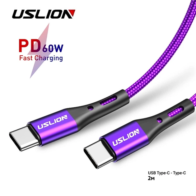 Кабель USB Type-C - USB Type-C (2m) 60W PD Fast Charging дата-провід швидкого заряджання даних для телефону смартфона USLION