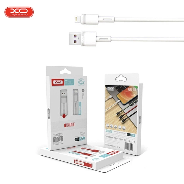 USB кабель для заряджання телефону XO NB-Q166 5A USB - Lightning 1М Білий