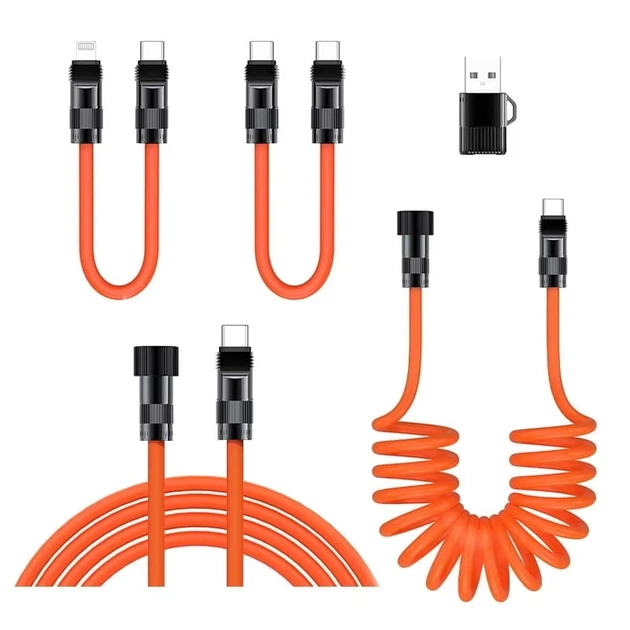 Комплект Geek Cable MediaLab 240W 6Amax 480Mbps (Type C + Lightning + Spring + Adapter USB A) Orange (43318)