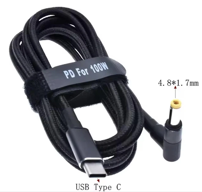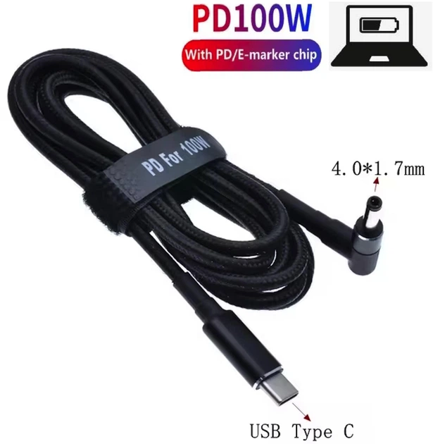 Кабель для заряджання ноутбука HP з тригером PD 100W Type-C на DC 4.8x1.7 (1.8 метри)