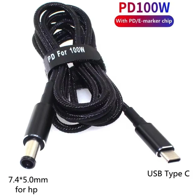 Кабель для заряджання ноутбука HP з тригером PD 100W Type-C на DC 7.4x5.0x0.6 (1.8 метри)
