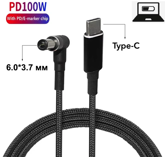Кабель для заряджання ноутбука Asus з тригером PD 100W Type-C на DC 6.0x3.7x0.6 (1.8 метри)