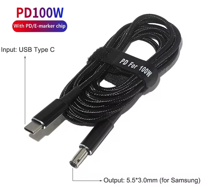 Кабель для заряджання ноутбука Samsung з тригером PD 100W Type-C на DC 5.5x3.0 (1.8 метри)