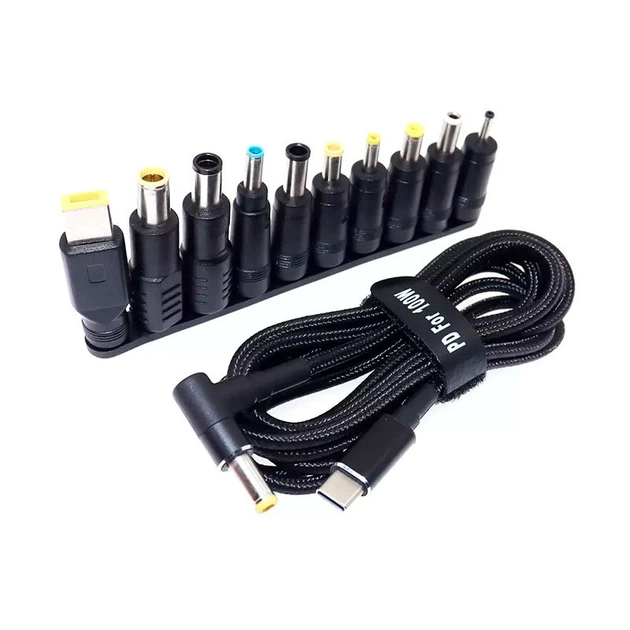 Кабель живлення USB to DC 100W із набором перехідників для ноутбука 10в1 Black 70037