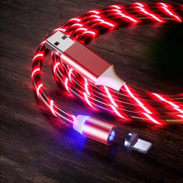 Магнітний кабель, що світиться Apple Lightning (для Айфон) із швидкою зарядкою та передачею даних Red