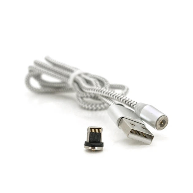 Магнітний кабель PiPo USB 2.0/Lighting, 1m, 2А, тканинне обплетення, броньований, знімач, Silver 18168