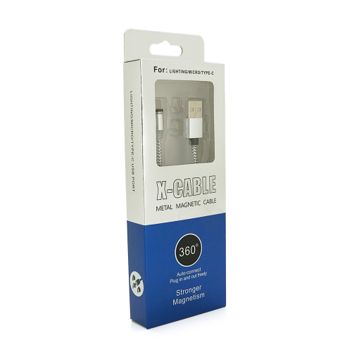 Магнітний кабель PiPo USB 2.0 / Lighting 1m 2А тканинна оплетка броньований знімач Silver BOX