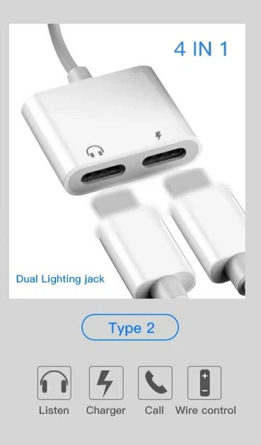 Адаптер подвійний lightning 4 в 1 10 см білий (1010038)