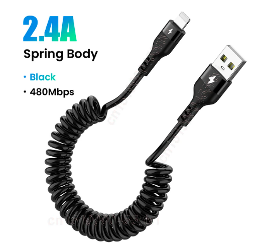 Кабель пружина lightning USB 2.4A зарядка для iPhone в розтяжці до 1,5м Чорний