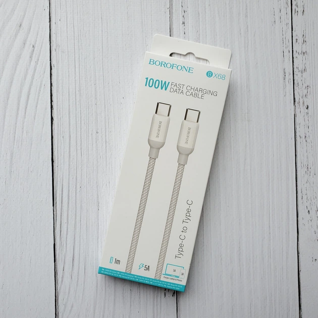 Кабель USB Borofone BX68 100W 20V5A Type-C to Type-C білий (2711)