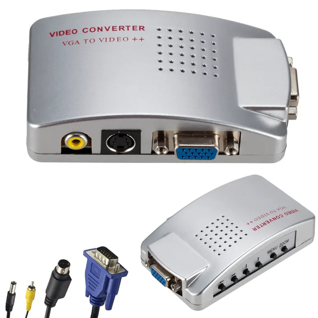 Адаптер конвертер 4в1 з VGA на RCA, AV, S-Video / Перетворювач відеосигналу перехідник з AV на VGA (L)