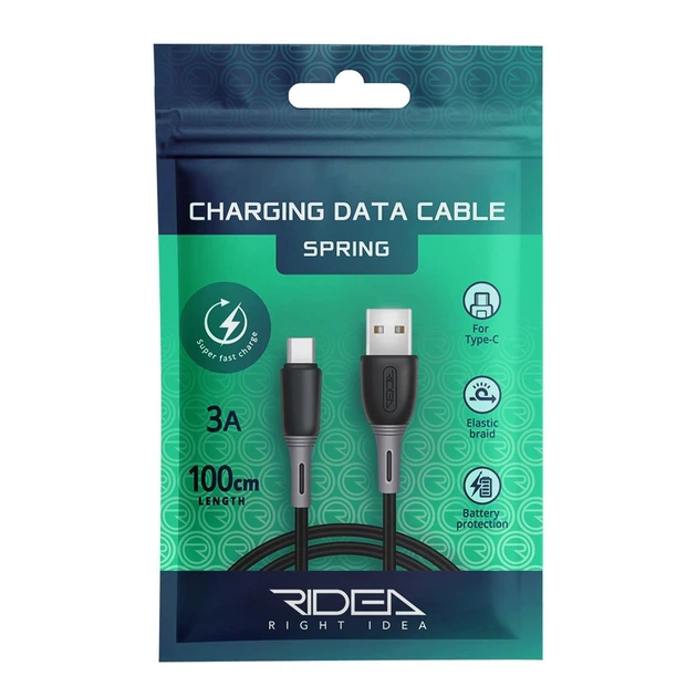 Кабель USB Ridea RC-M123 Spring потужність 60W USB - Type C 3A 1m Black