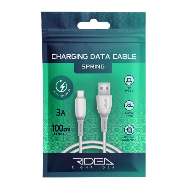 Кабель USB Ridea RC-M123 Spring потужність 60W USB - Type C 3A 1m White