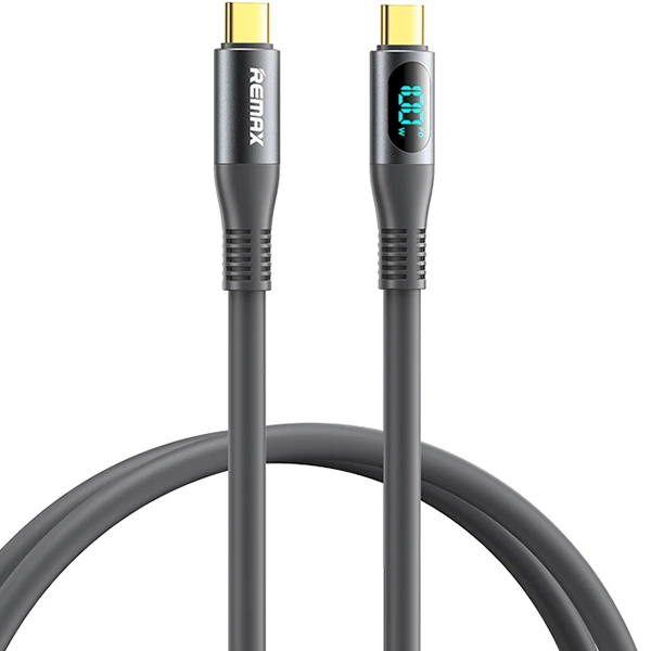 Плетений кабель REMAX RC-C069 із цифровим дисплеєм Type-C на Type-C 100W 1,2м Black