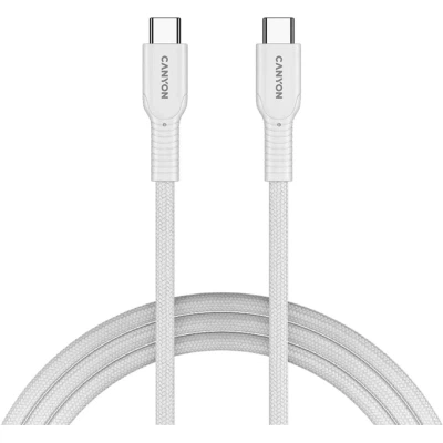 Дата кабель USB-C to USB-C 1.0m OnWire 60CL C-C 60W COLOR Braided 1m White Canyon (CND-CCAP60AB10W)