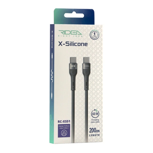 Кабель USB Ridea RC-XS51 X-Silicone Type-C to Type-C 60W 2m Чорний