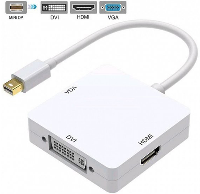Перехідник Mini DP - HDMI+VGA+DVI 012k