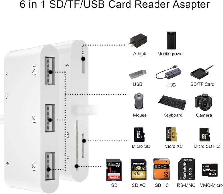 Адаптер Lightning 3 USB SD MMC для iPhone Ipad