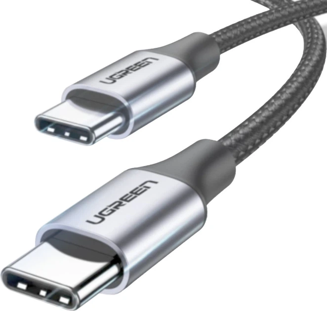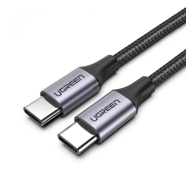 Кабель UGREEN US161 USB Type-C Male to USB Type-C 60W Male Cable Nickel Plating Aluminum Shell 3A 1.5m Gray (50751)