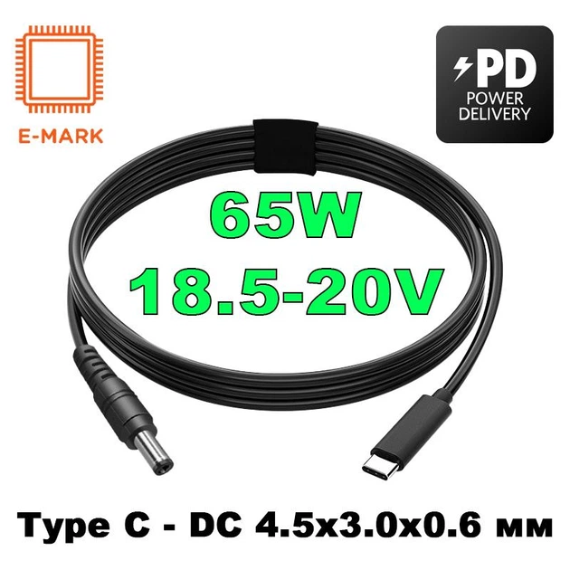 Кабель-перехідник PD 65W Type-C на DC 4.5x3.0x0.6 на 18.5-20V вольт 1.5 м для заряджання ноутбука Dell з тригером (1.5 метри