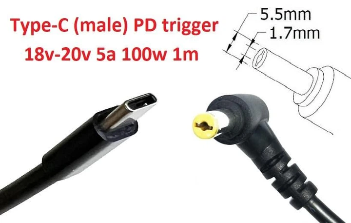 Кабель-перехідник PD 18-20v тригер Type-C max 5a 100w на 5.5x1.7mm A class 1 день гар.
