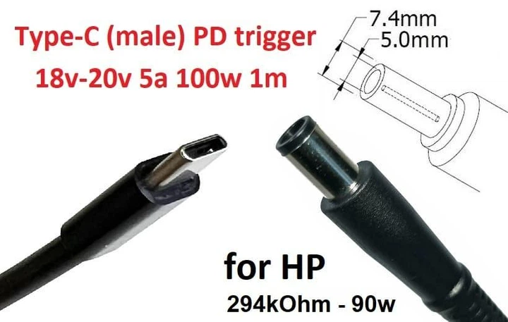 Кабель-перехідник PD 18-20v тригер Type-C max 5a 100w на 7.4x5.0mm +pin A class 1 день гар.