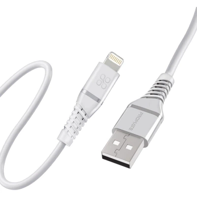 Кабель Promate USB - Lightning (M/M), 2.4 A, 1.2 м, PowerLine-Ai120 White