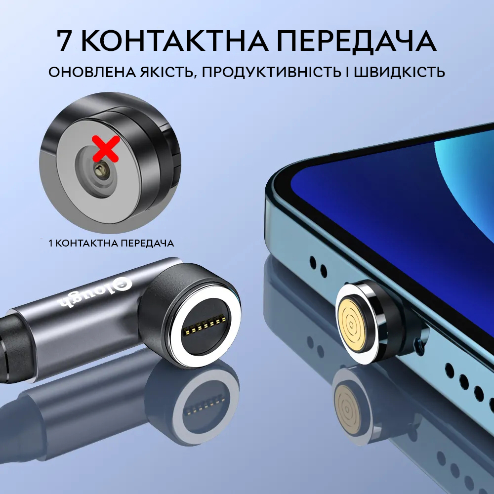 Кабель магнітний із швидкою зарядкою Elough 7 Contact 3 A 1 м 3 в 1 Micro USB/Lightining/Type C, Grey обертання на 540°