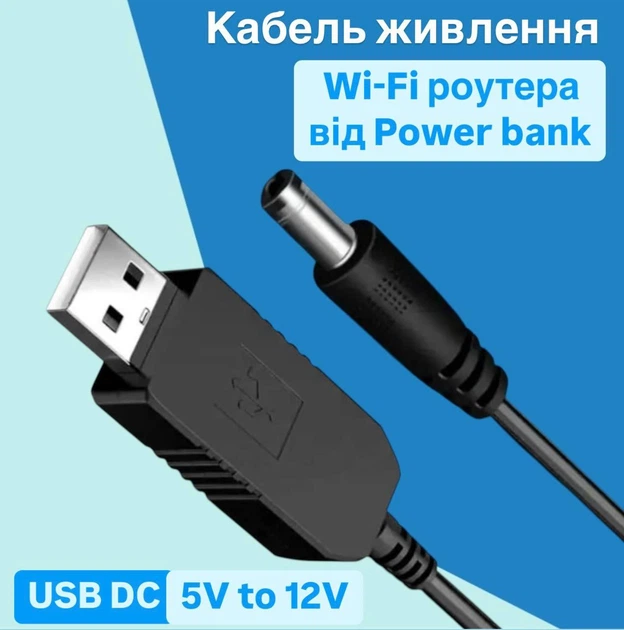 Перехідник - кабель для роутера від павербанку USB з 5В на 12В (5V to 12V DC) 5.5x2.1 мм 100 см