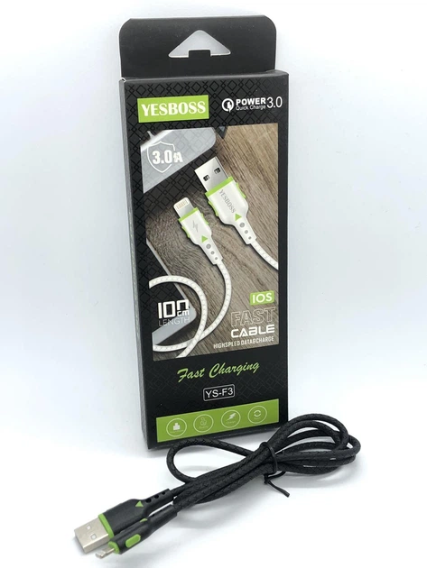 Кабель YESBOSS Lightning YS-F3 Quick Charge 3.0, 1м 3A