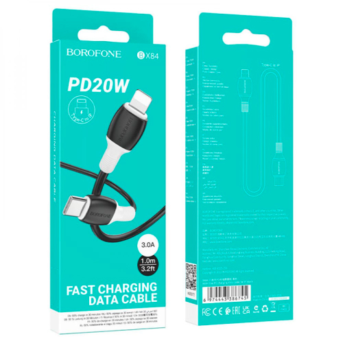 Кабель заряджання BOROFONE BX84 Type-C - Lightning 20w/3a/1m для пристроїв Apple iPhone, iPad/iPod Чорний