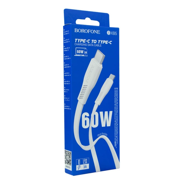 Кабель USB Borofone BX85 60W (20V/3A) Type-C to Type-C Колір Білий