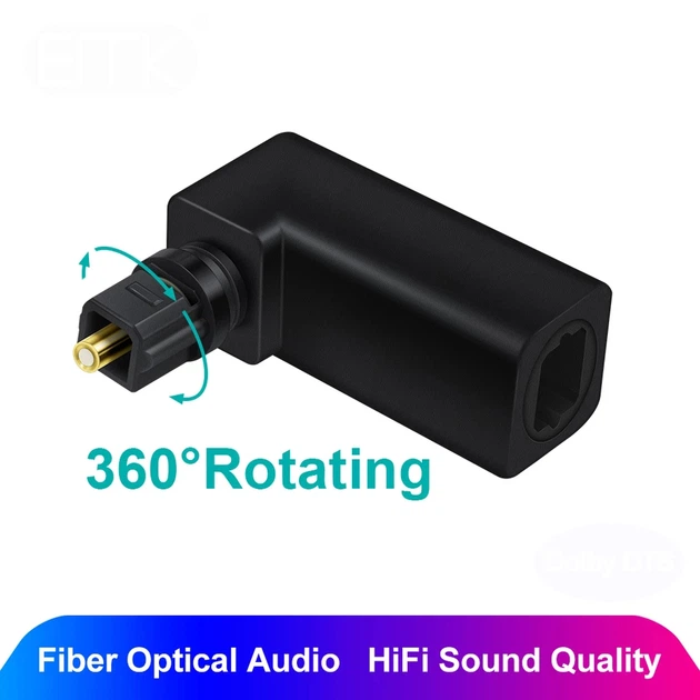 Перехідник Toslink 90 градусів поворотний конектор для оптичного цифрового SPDIF optical аудіо кабелю адаптер 360 обертовий