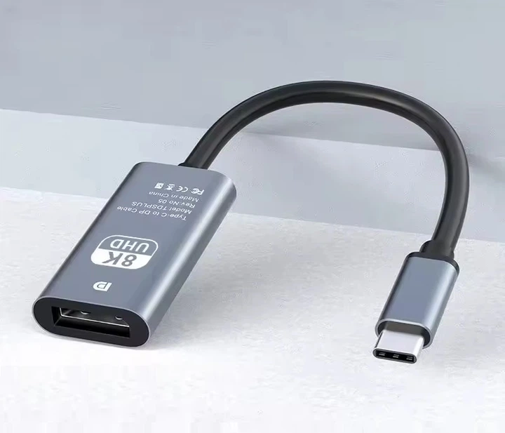 Адаптер Thunderbolt (Type-C) to DisplayPort (F) 4K 144Hz HDR (2K 240Hz, 8K 60Hz) 0.2m, перехідник, метал, ПВХ, black-grey AT