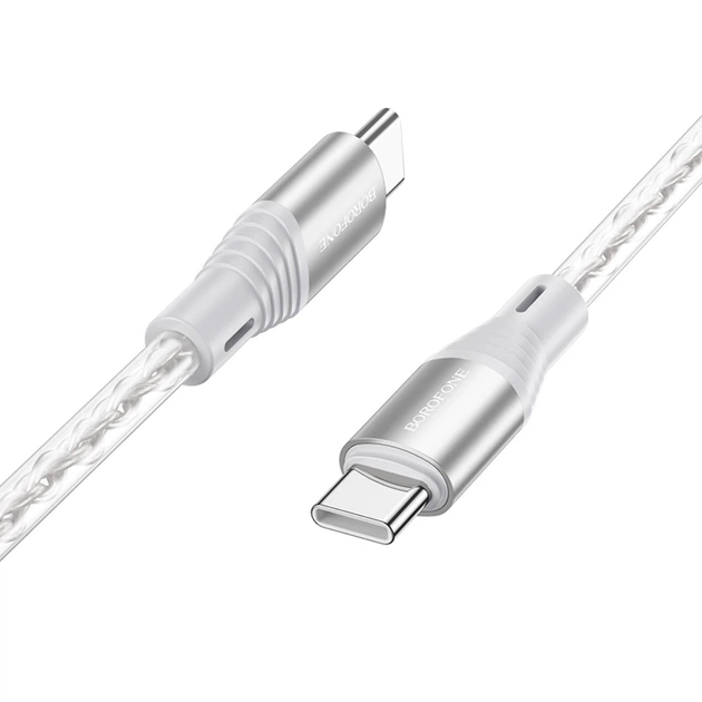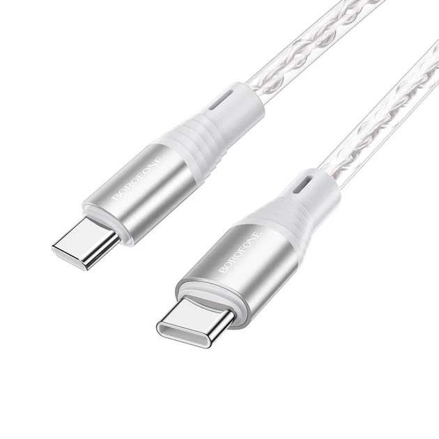 Кабель Borofone BX94 Crystal color 60W silicone charging cable Type-C to Type-C 3A 1m white