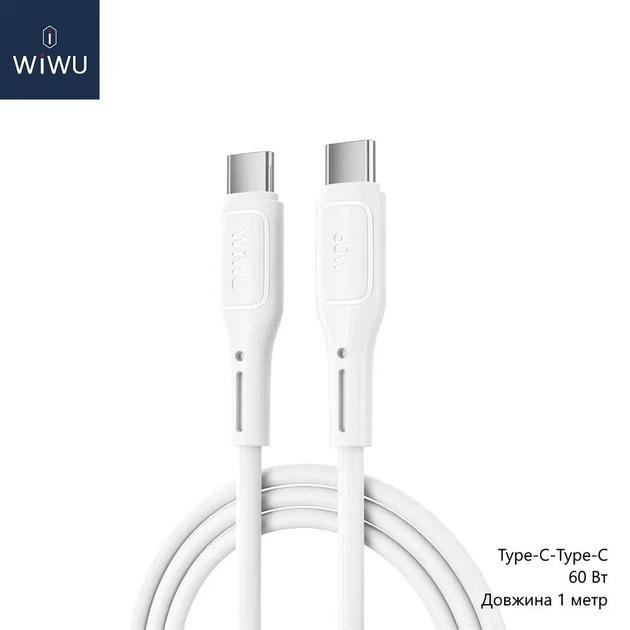 Кабель WiWU Wi-C043E (Type-C-Type-C, швидка зарядка до 60 Вт, довжина 1 метр) - Білий