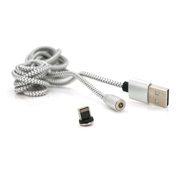 Магнітний кабель PiPo USB 2.0/Lighting, 2m, 2А, тканинне обплетення, броньований, знімач, Silver 18169
