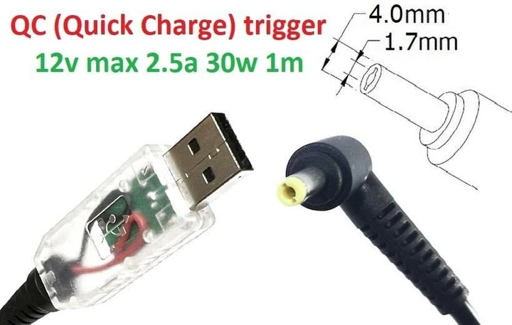 Кабель-перехідник тригер QC Quick Charge 12v USB Type-A max 2.5a 30w на 4.0x1.7mm A class 1 день гар.