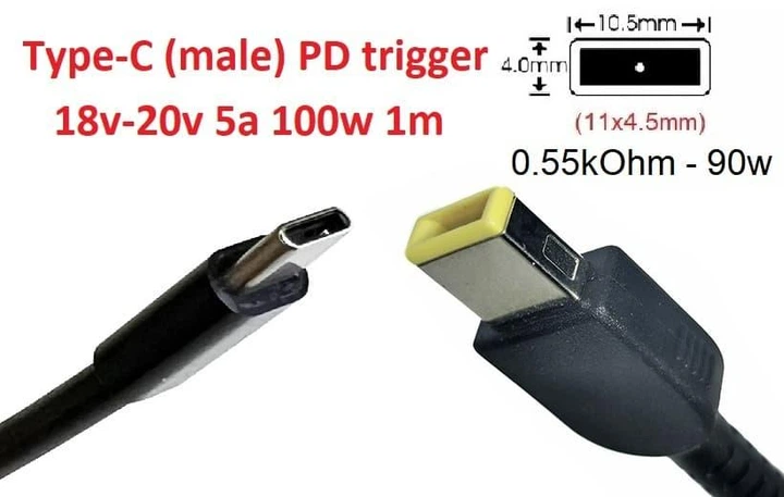 Кабель-перехідник тригер PD 20v Type-C max 5a 100w на Square tip 11.0x4.5mm +pin A class 1 день гар.