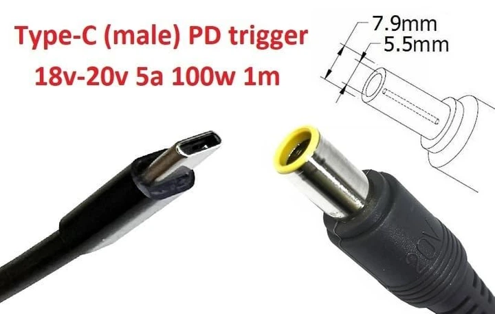 Кабель-перехідник тригер PD 18-20v Type-C max 5a 100w на 7.9x5.5 або 8.0x7.4mm +pin A class 1 день гар.