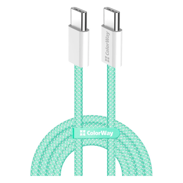 Дата USB-C кабель USB-C 1.0m 60W 3.0А green ColorWay (CW-CBPDCC061-G)