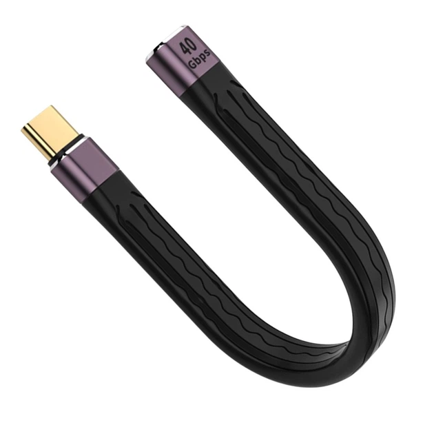 Кабель USB-C 4.0 перехідник для ноутбуків, USB-C гніздо - USB-C штекер убік, плоский, 240W, 40 Gb/s