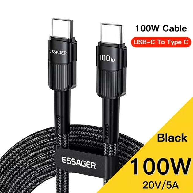 Кабель Essager Fast Charging Type-C to Type-C PD100W 5A 200 cм Black