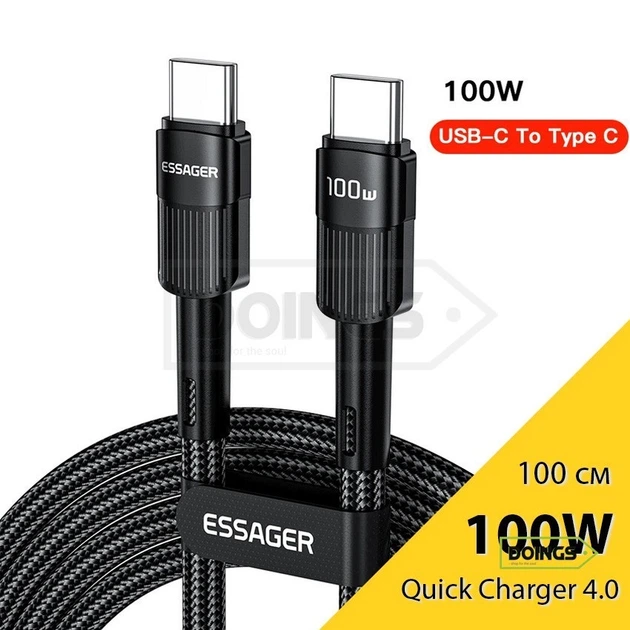 Кабель Type-C - Type-C Essager 20V, 5A 100W, Black - Fast Charge, 200 см (для заряджання та передачі даних)