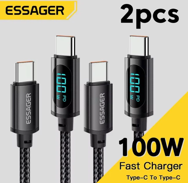 USB кабель 2 шт Essager 100W з LED-дисплеєм для швидкої зарядки ноутбука Type-C - Type-C 5A EXCTT1-XY01-P 1м Чорний