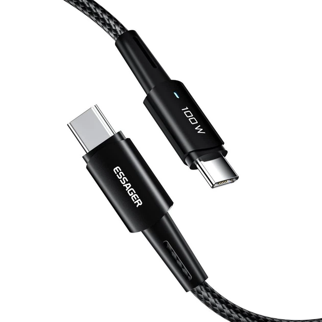 Кабель 100W 7A Essager PD USB-Type-C для ноутбуків смартфонів планшетів LED дисплей 1.0 м Black