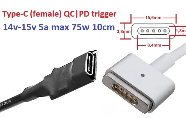Перехідник до блоку живлення MagSafe 1 8-10cm з USB Type-C (Female) Quick Charge Power Delivery QC|PD тригер (A class) 1 ден