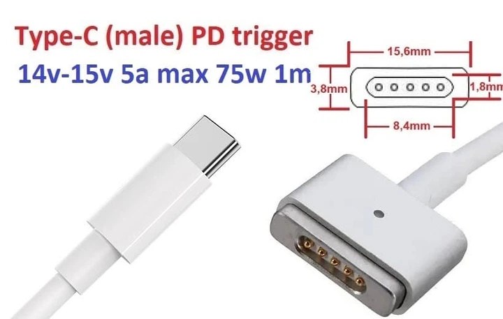 Перехідник до блоку живлення MagSafe 1 1m з USB Type-C (male) Power Delivery PD тригер (A class) 1 день гар.