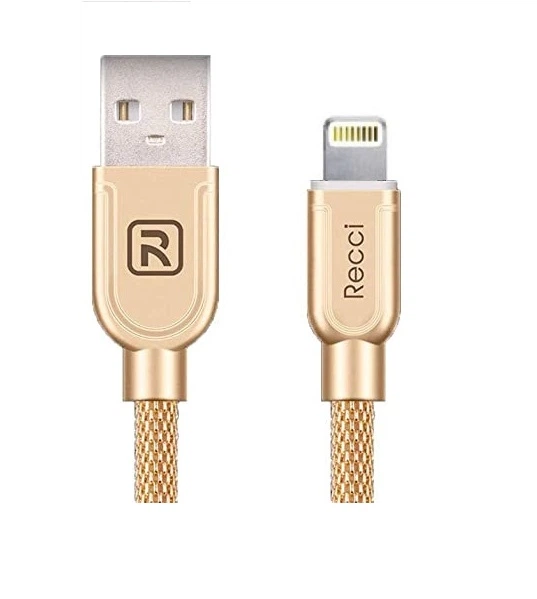 Кабель Recci RCL-T100 USB Lightning Armor 1м золото