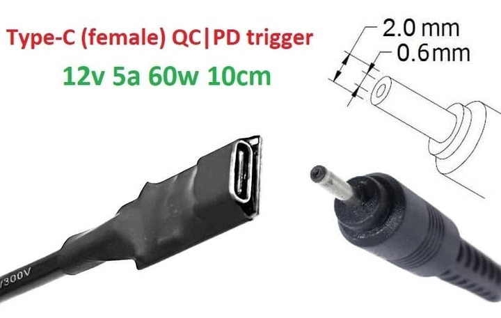 Перехідник для роутера 12v (2.5a, 30w) 2.0x0.6(1.0)mm 8-10cm з USB Type-C (Female) Quick Charge Power Delivery QC|PD тригер